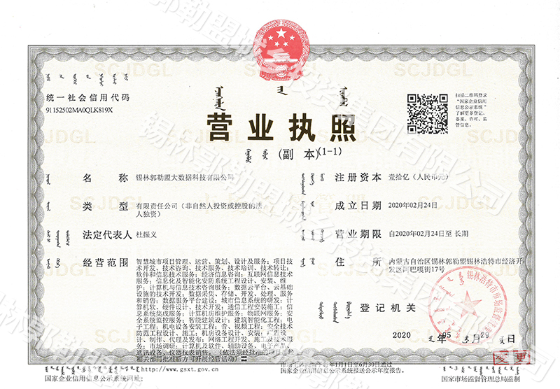 錫林郭勒盟大數(shù)據(jù)科技有限公司是隸屬于錫盟城投集團(tuán)的全資子公司,成立于2020年,注冊(cè)資本金人民幣10億元。錫林郭勒盟大數(shù)據(jù)科技有限公司的成立是錫林郭勒盟委、行署就布局?jǐn)?shù)字化、信息化、智慧化城市發(fā)展的重要舉措。錫林郭勒盟大數(shù)據(jù)科技有限公司成立之初,就以創(chuàng)建“智慧錫盟”、打造“數(shù)字城投”為己任,并以智慧錫林郭勒項(xiàng)目的一期工程為起點(diǎn),逐步發(fā)展涵蓋各部門(mén)、各領(lǐng)域的綜合性城市智慧化建設(shè)、運(yùn)營(yíng)、維護(hù)的服務(wù)主體。