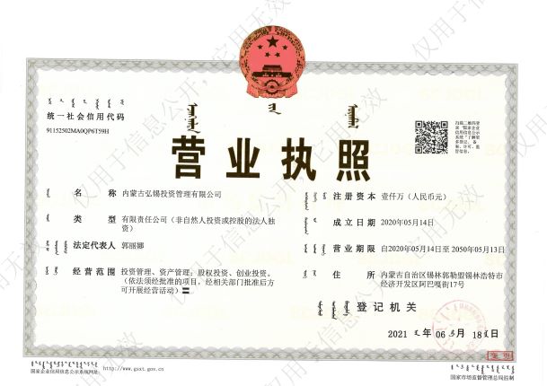 內(nèi)蒙古弘錫投資管理有限公司由錫林郭勒盟城鄉(xiāng)投資集團(tuán)有限公司成立于2020年5月14日,注冊本金1000萬元,經(jīng)營范圍為投資管理、資產(chǎn)管理;股權(quán)投資、創(chuàng)業(yè)投資。公司下設(shè)財務(wù)部、資金管理部、項目部和綜合辦公室,配備了大量房地產(chǎn)、財稅、建筑等專業(yè)人才。