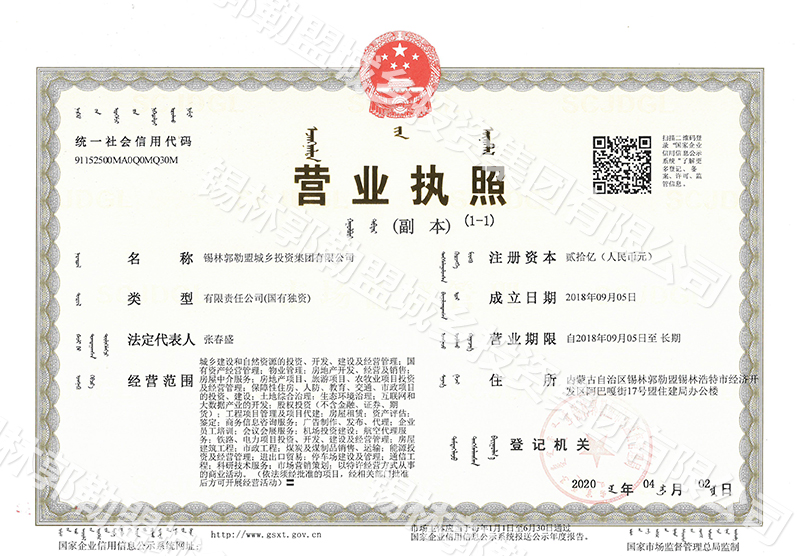 錫林郭勒盟城鄉(xiāng)投資集團(tuán)有限公司營(yíng)業(yè)執(zhí)照